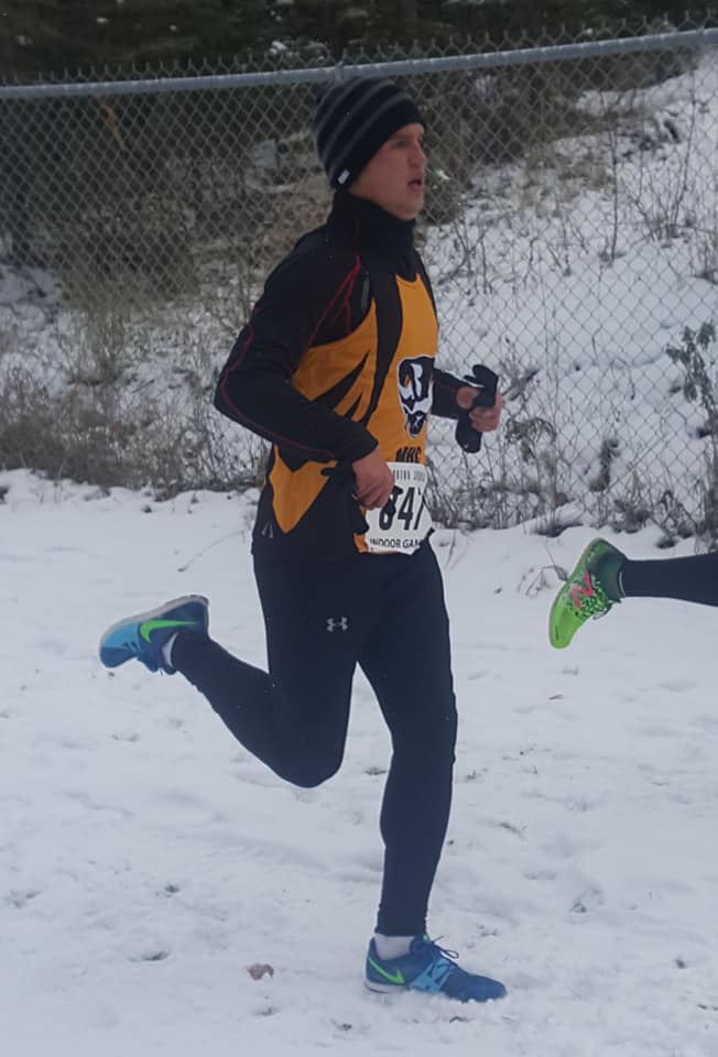 Schiller parlayed his home course knowledge into a solid 18th place finish under snowy, chilly conditions.  He rallied hard over the final lap stopping the clock  at 33:03 for the 8 km distance.