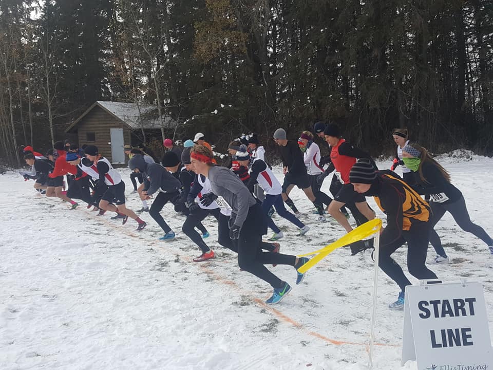 Runners are off at the start of the 2020 Alberta XC Running Series Final in Red Deer on Saturday